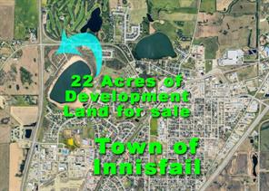 Endless opportunity awaits in Innisfail with this prime 6.57-acre development parcel ideally located within town limits along busy Hwy 42 and directly across from the prestigious 27 hole Innisfail Golf Club, offering exceptional exposure, accessibility, and long-term growth potential. Zoned R-3, this property presents a wide range of development possibilities including single-family homes, multi-family projects, commerical or innovative mixed-use concepts (subject to town approval), making it highly attractive for builders, investors, and developers looking to capitalize on a strategic location. A standout feature is the rare Napoleon Lake frontage, adding natural beauty, premium lot potential, and enhanced market appeal to any future project. With strong visibility, high traffic counts, and proximity to key amenities, this parcel is perfectly positioned for success in a growing community. Innisfail continues to attract attention for its balance of small-town charm and modern convenience, offering parks, recreation, strong local economy, and easy access to major transportation routes—making it not only a smart investment, but a fantastic place to live, build, and grow.